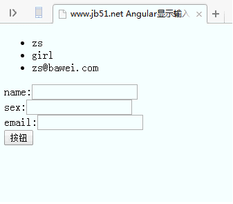 本文实例讲述了Angular实现点击按钮后在上方显示输入内容的方法。分享给大家供大家参考,具体如下: