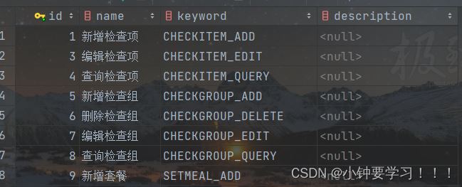 INSERT INTO `t_permission` VALUES ('9', '新增套餐', 'SETMEAL_ADD', null);