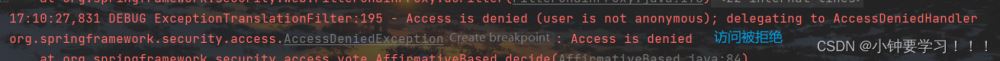 3、点击删除的时候前端页面不会提示,查看后端控制器代码,发现被拦截了,如下报错: