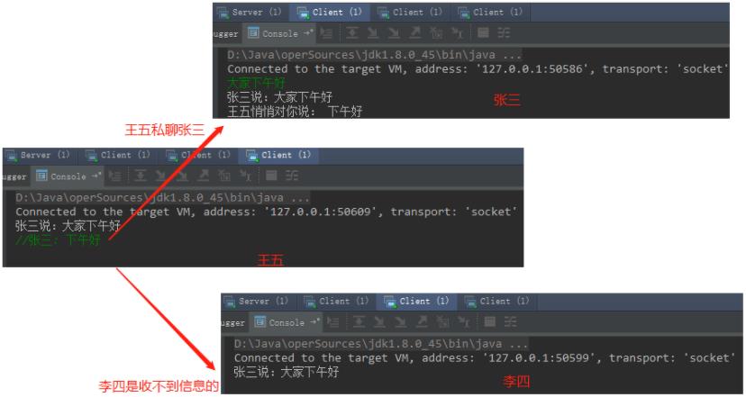 //则可以确定是私聊信息,私聊信息只向特定的输入流发送