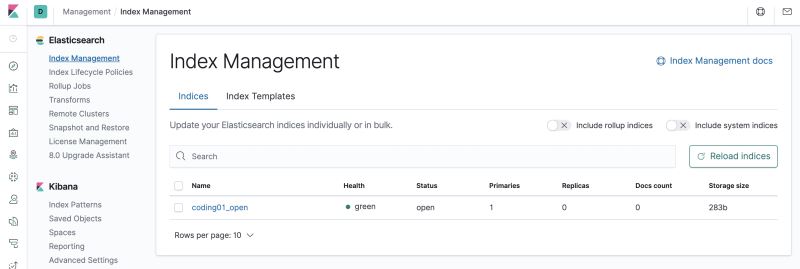 好了,我们执行 Kibana 看到我们已经创建好了 Index: