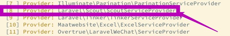 选择:Laravel\Scout\ScoutServiceProvider
