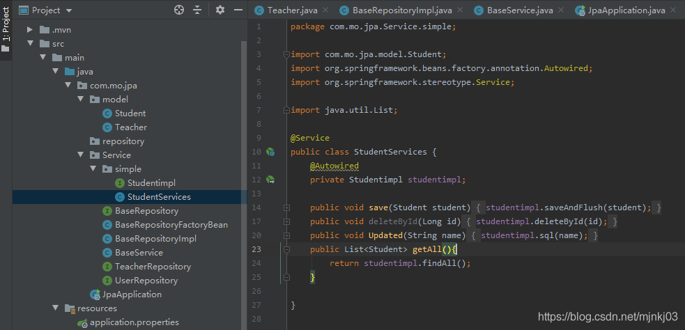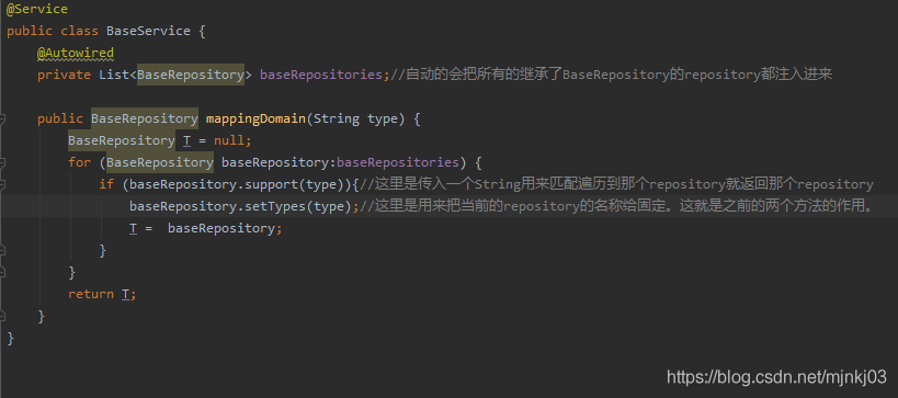 这样的写法简洁,但是如果是想用一个通用的方法就能实现多个repository的注解,根据一个特定的String匹配她,这样就不用每次一些简单的方法都注入一个新的repository了。说白了想偷懒。参考了不少的文献得到的步骤,还是很值得学习的。