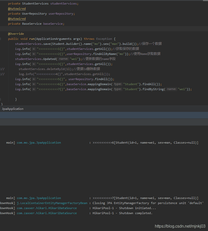 来看看结果:6-------7实现了传一个String匹配到repository,其他的更多的方法自己封装咯。拜拜。不懂得留言或者多logger一下,毕竟版本在变,会存在一些差异,但是总的还是能实现的,除非大改,那就是一个新的问题了。