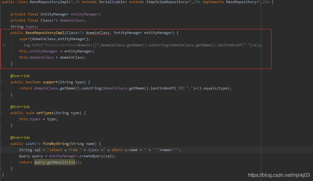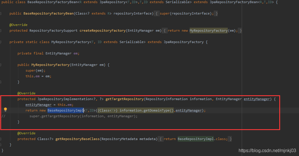 其他的都是千篇一律,红框返回我们的实现类BaseRepositoryImpl就OK了,还有下面的方法也是。。。