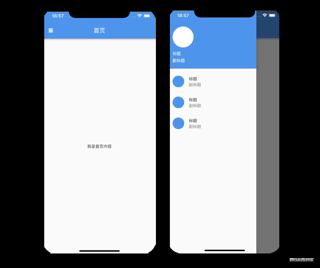 尝试案例后,就会知道,其实上面的案例图就是换过的侧边栏按钮,变粗了一点,没错,这也和我们后面介绍的 Builder 关联上了
