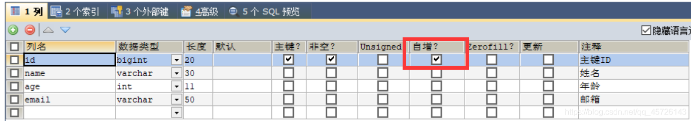 我们需要配置主键自增