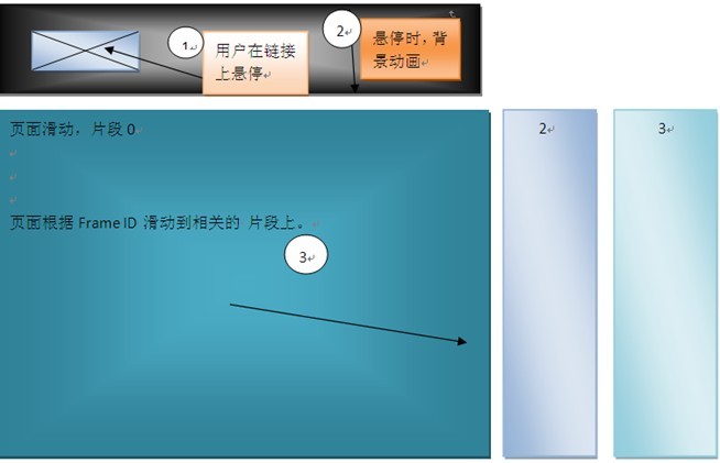 1.头滑块:当用户停留超过1个frame的时候。一个动画效果转到了一个独特的背景,具体是到特定链接标题壁纸的位置。当头部的壁纸完全呈现时,显现出一些特殊的文字,例如标题或网站的标语。
