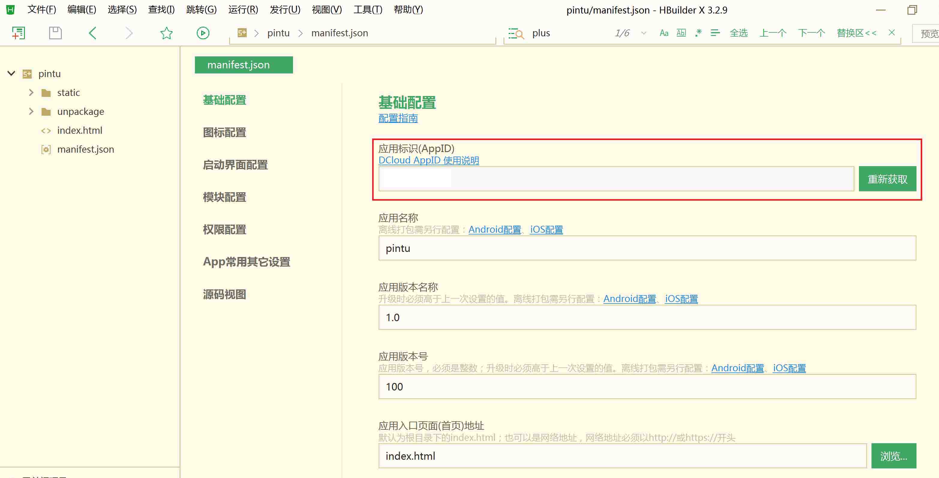 4.4 点击:manifest.json,进行以下配置