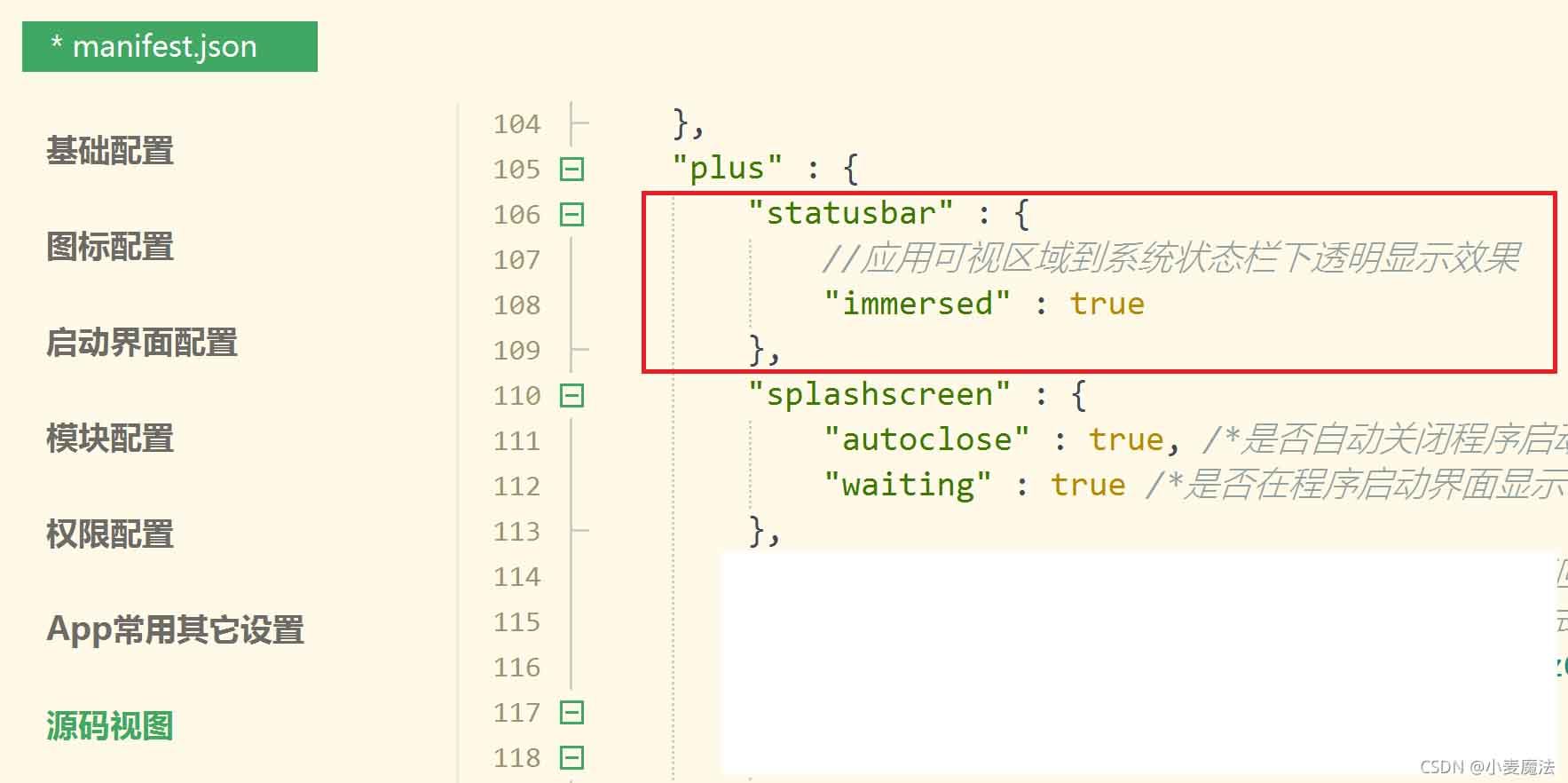 (3)在【源码视图】的plus属性中,增加以下代码: