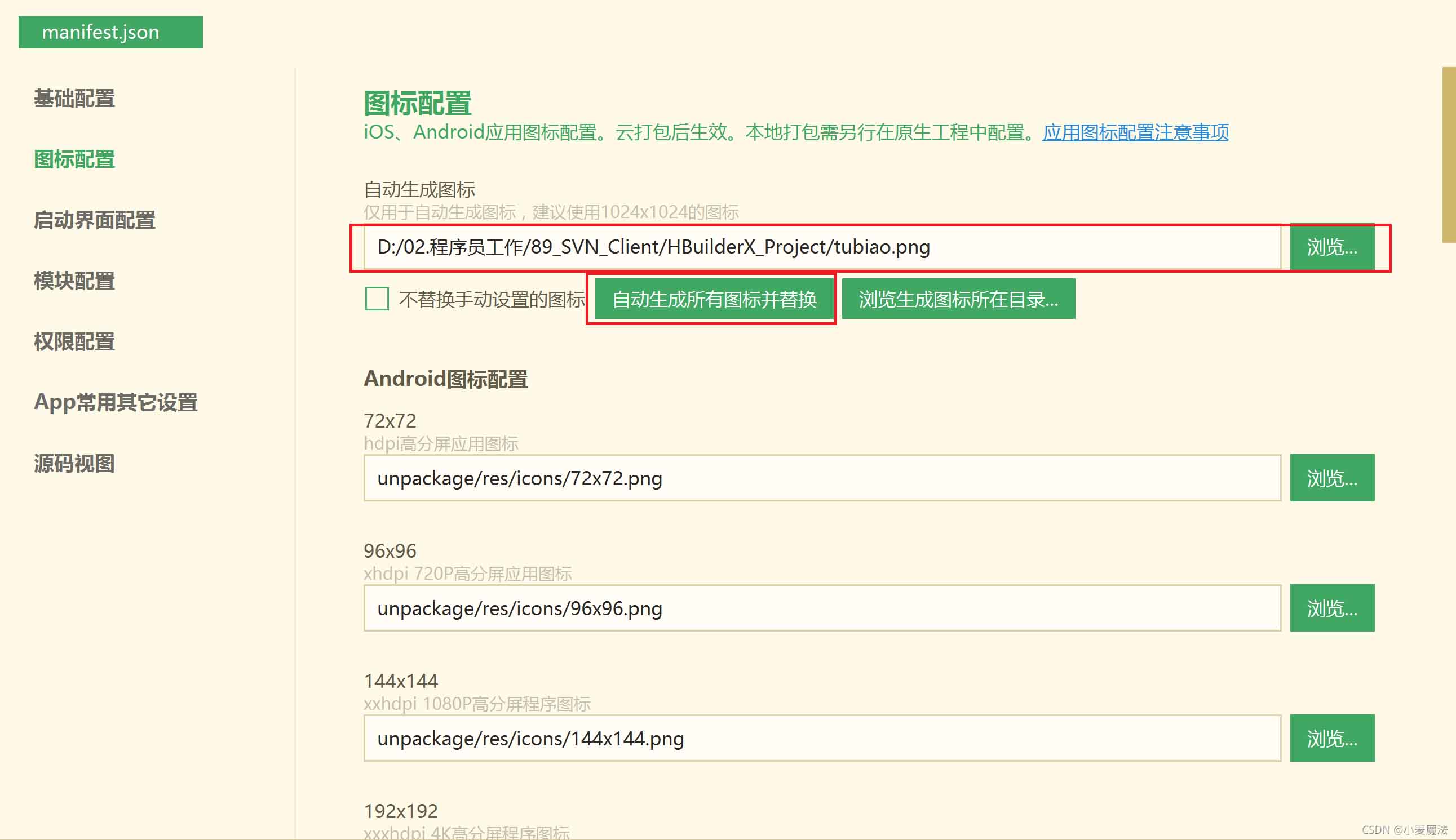 选择一个1024*1024的图标,然后勾选:【自动生成所有图标并替换】