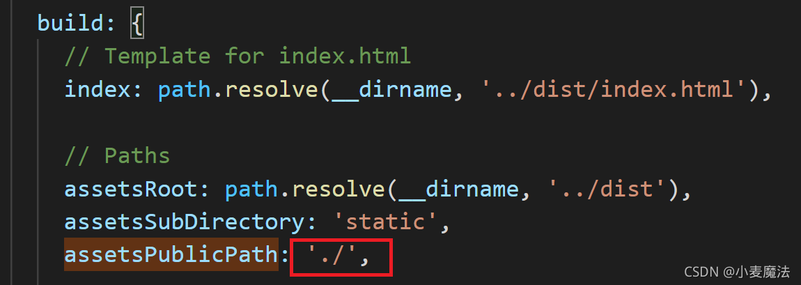 把build下面的assetsPublicPath的值,从’/‘改为’./’: