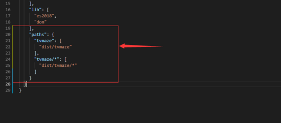 我们会发现库不存在。因为这种方式,它是从 node_modules 寻找,所以我们要在根目录下 tsconfig.json 添加 paths
