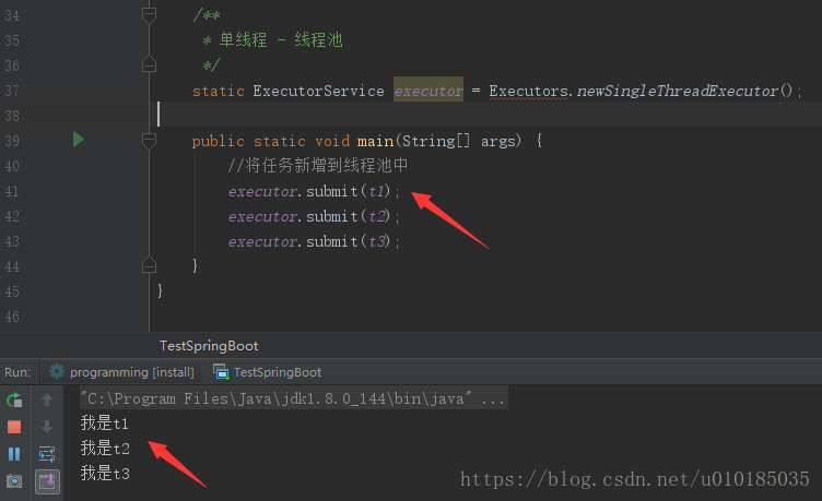 这里我们使用Executors中的newSingleThreadExecutor()方法,创建一个单线程的线程池。