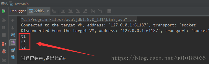 根据上图可以得知,利用newSingleThreadExecutor()方法依然能够达到我们期待的效果,其实原理很简单,方法内部是一个基于FIFO的队列,也就是说,当我们依次将t1,t2,t3加入队列中时,实际在就绪状态的只有t1这个线程,t2,t3则会被添加到队列中,当t1执行完毕后,则会继续执行队列中的其他线程。