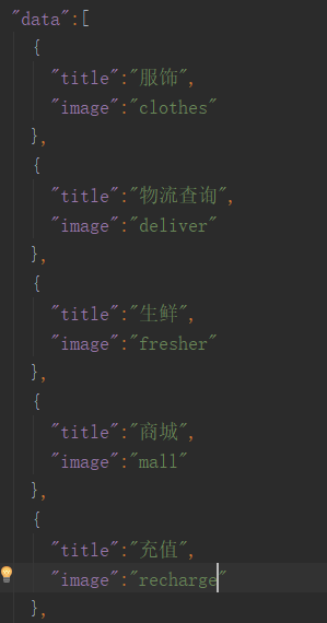 1、定义数据源,在constructor中初始化state,创建一个DataSource对象,在state中定义数据源iconSource为外部导入的json数据icons,格式如下: