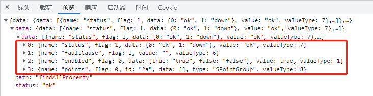 说明下数据字段的含义:name属性算是表头,然后里面的valueType代表的是各种不同输入框;比方说上面的7代表的是普通的下拉框,然后6就是普通的输入框,1的话是布尔下拉框(其实在前端这边1和7是一样的,但是需要注意点的是Element中的下拉框判断使用的是双等于号,意思说,布尔true等于字符转的false及true=='false'是正确的,所以这里需要格式化);如果等于的是8的话,代表这个是另一个子表单。如果有对应的editData字段,并且这里还需要递归一次这样的数据;