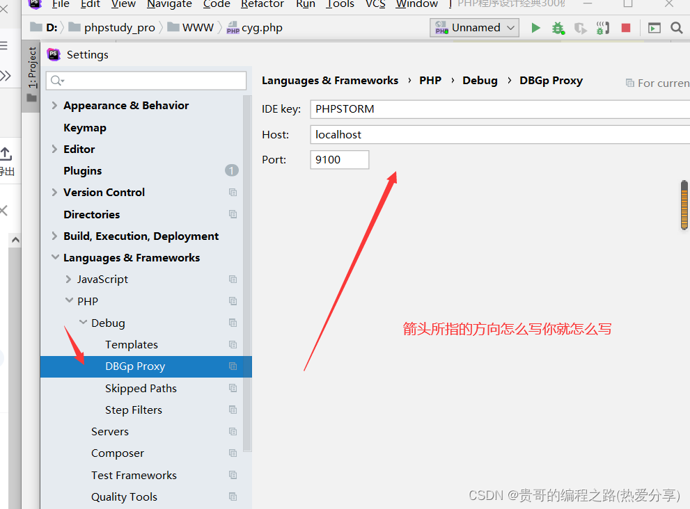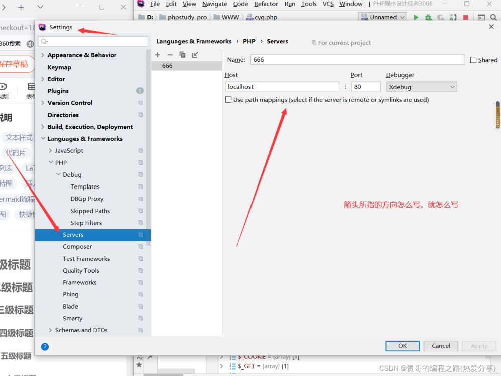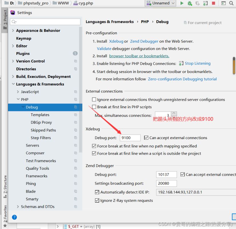 phpstorm—>File----》settings---->languages&Frameworks---->php---->debug—>