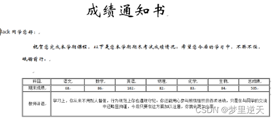 doc = Document('成绩通知书.docx') # 创建文档对象