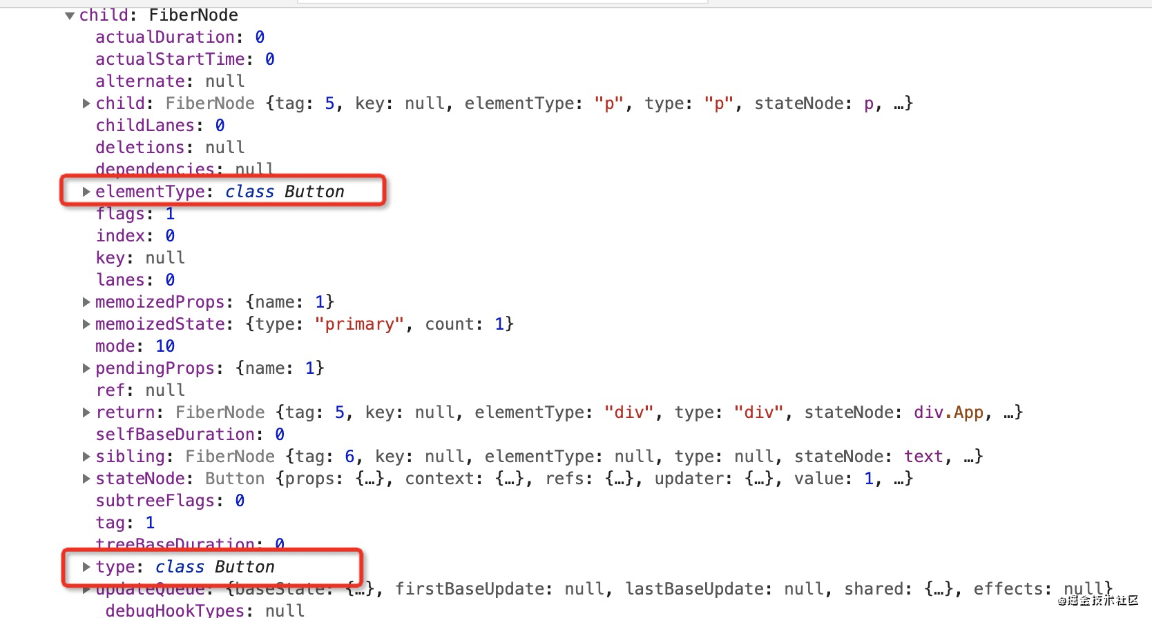 FiberNode基本显示如上,elementType和type的基础类型为function、class。