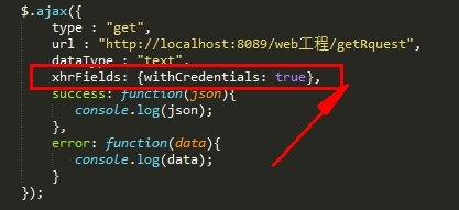 (2). ajax请求中加上字段xhrFields:{withCredentials:true},这样可以携带上cookie