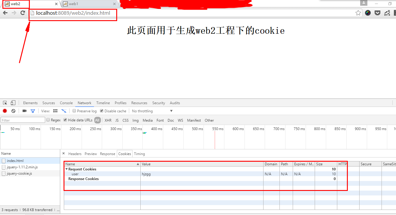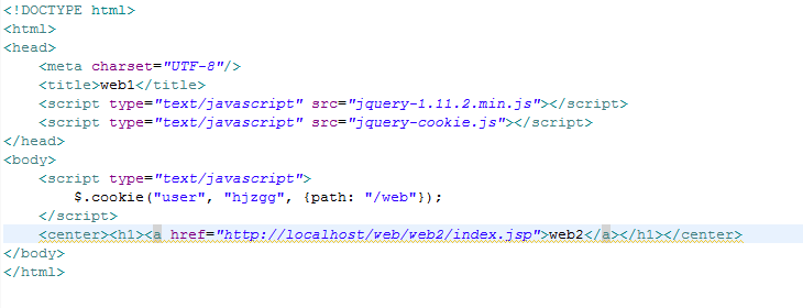 这样就可以保证cookie在同一域下。web2工程中的index.jsp中的输出内容如下: