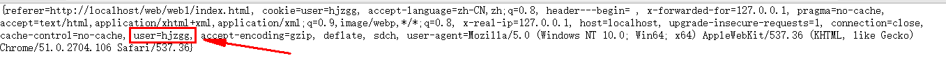 利用nginx的方向代理来解决cookie跨域问题,其实是通过“欺骗”浏览器来实现的,通过nginx,我们可以将不同工程的cookie放到nginx域下,通过nginx反向代理就可以取到不同工程写入的cookie。其实上述场景中$.cookie("user", "hjzgg", {path: "/web"}); 中的path可以写成 “/”, 这样nginx的配置就更为简单了,如下。