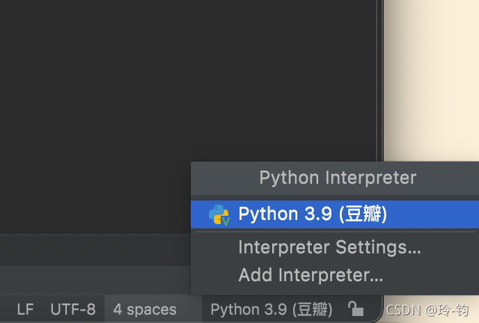 【找到右下角,点击python,然后会冒出几个选项,我们点击第二个选项interpreter settings就可以了】