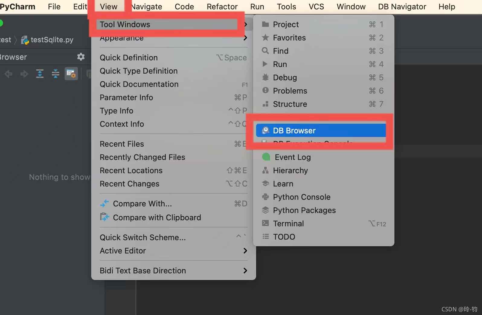 点击view->Tool Windows->DB Browser[若存在这个选项,则说明以上操作均正确]