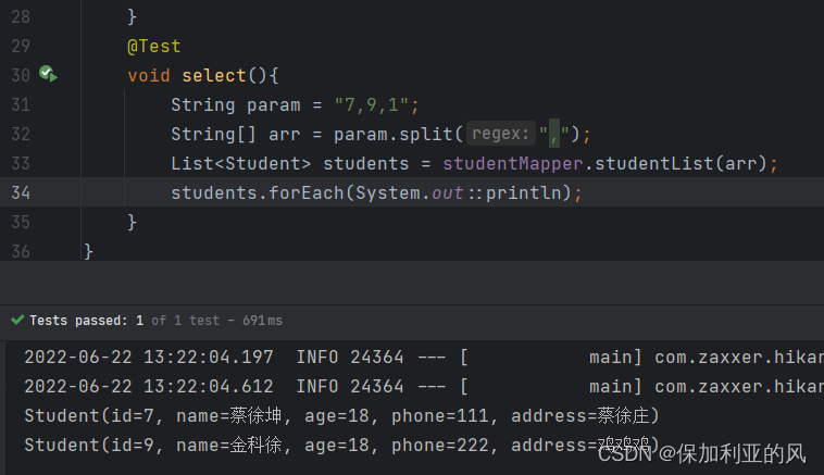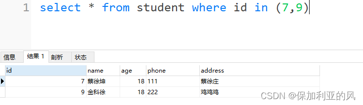 [Student(id=7, name=蔡徐坤, age=18), Student(id=9, name=金科徐, age=18)]