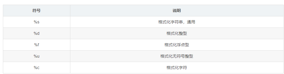 同样也支持对不同数据类型格式化,但有些格式符,比如u、c