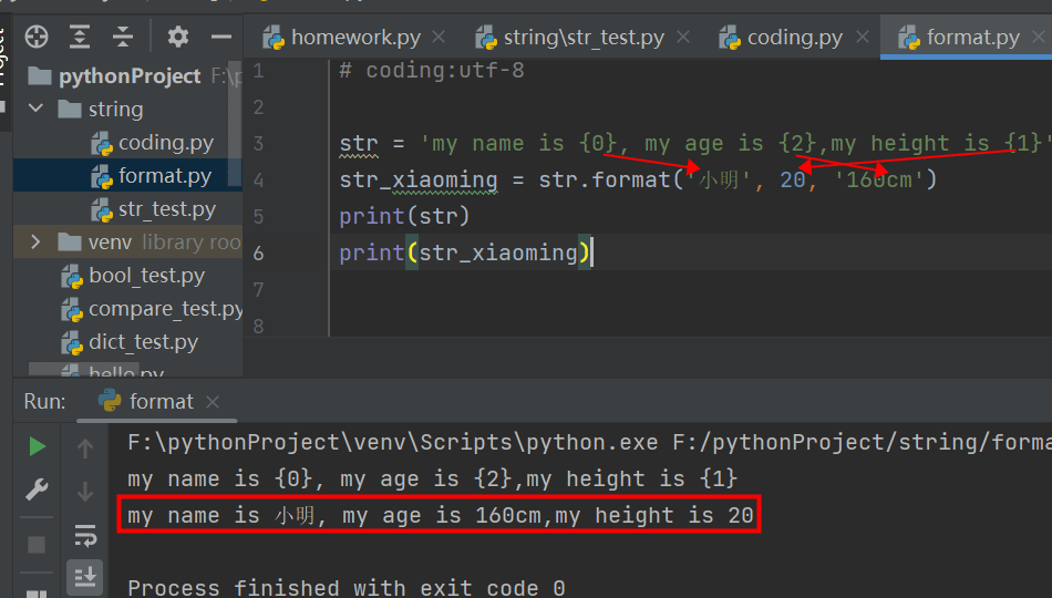 使用format的字符串主体使用{}来代替格式符,{}中可以指定顺序