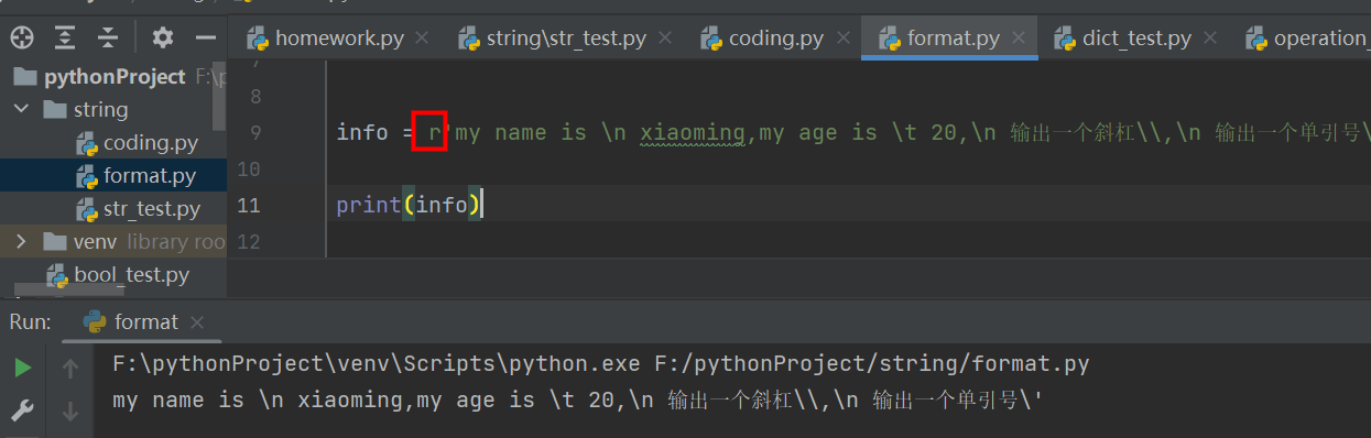 print(r'有转义字符的字符串') # 此时转义字符是无效的