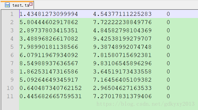 数据分为三列,前两列是特征,最后一列是标签。