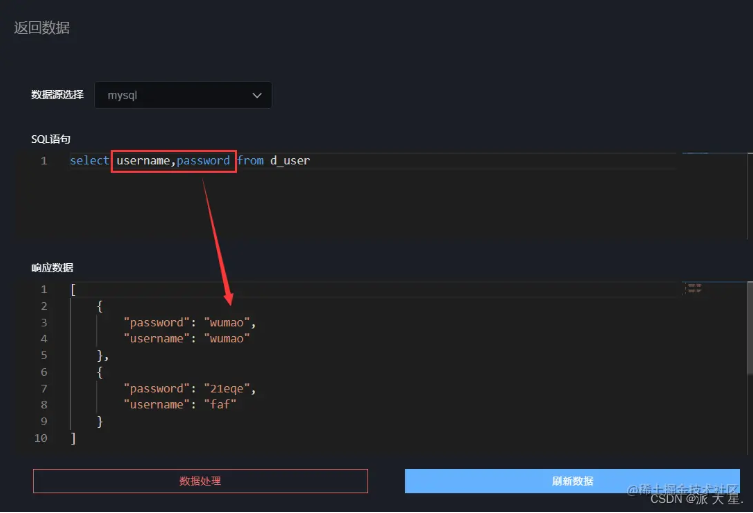 前言: 由于前段时间,项目组长分配的任务是要完成一个在线编写SQL并要实现查询功能的需求,最终需要将查询到的数据以JSON格式显示到响应数据的区域,以供操作者进行查看,一开始拿到需求时想着直接使用Mybatis进行操作不就可以了,完全没必要大费周章,因为在MyBatis中有个拼接SQL的语法,可以使用${sql}来进行执行输入的SQL语句,但是实际操作起来并不是想象中的那么简单,因为使用MyBatis会将数据源固定在本项目所使用的数据库,而不可以进行数据源之间的切换,无法进行其他数据源中表的查询操作 ❌,所以在实现过程也是相当艰难曲折...