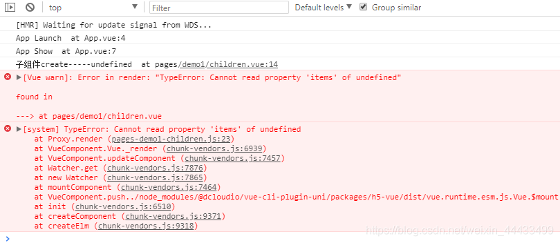 created里面的却不会发生改变, 子组件的html中的{{{childObject.items[0]}}的值虽然会随着父组件的值而改变,但是过程中会报错。