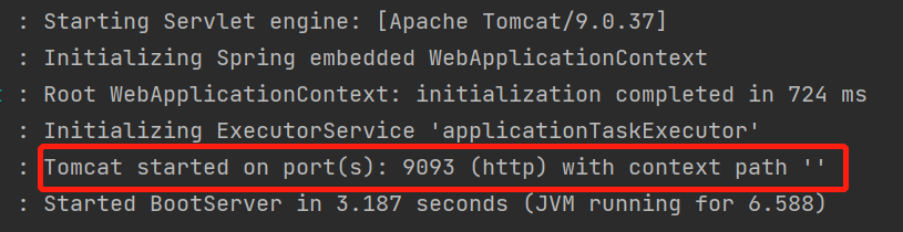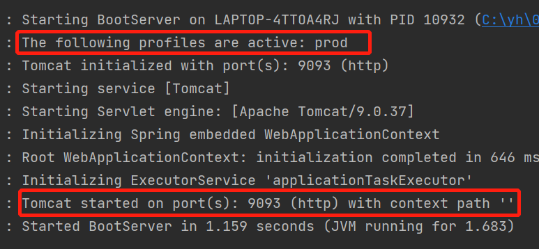 这里配置“-Dspring.config.name=application-prod”也就是使用application-prod.properties文件,那么这里的端口肯定是“9093”,看下启动日志
