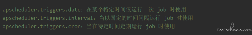 管理 job 的调度方式需要选择一个合适的触发器,APScheduler 内置三种触发器;