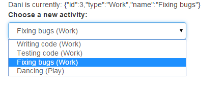 上面这条语句就是把选择的值与engineer.currentActivity进行双向数据绑定,然后列表中的选项是activities中的每一个值。数据如下: