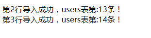 echo "第".$j."行导入成功,users表第:".$last_id."条!<br/>";