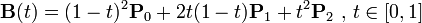 二阶贝塞尔曲线(抛物线):P0-P1是曲线在P0处的切线。