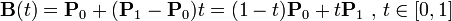 一阶贝塞尔曲线(线段):意思就是从P0到P1的连续点,用来描述一段线段。一次贝塞尔插值就是线性插值。