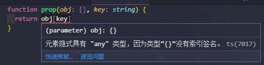 有了这两个类型注释,obj必须是对象,key必须是字符串。咱们现在已经限制了两个参数的可能值集。然而,TS 仍然推断返回类型为any: