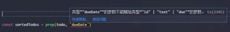 当然,各位也可以手动写出联合类型"id" | "text" | "due",而不是使用keyof,但是这样做很麻烦,容易出错,而且维护起来很麻烦。而且,它应该是特定于Todo类型的解决方案,而不是通用的解决方案。