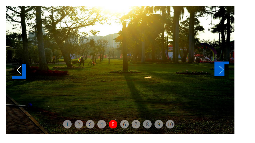 添加一个div(class=container),设置宽度和高度,这里设置了宽800px,高450px。添加居中的定位。在div里面添加一个ul(class="img")列表用来盛放图片,设置ul里面的li标签position为absolute,这时图片会重合在一起,同时设置display为none。图片设置宽度和高度与container相同。在container里面再添加一个ul列表用来盛放下面的一排数字,然后进行相应的定位和设置。添加两个div:left和right,分别是左右两个按钮,进行相应的定位和设置,里面的箭头分别是大于号和小于号。