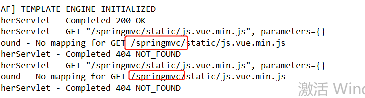 看下控制台,发现静态资源是被 springMVC 处理的,实际上处理不了,找不到资源自然就报错了。
