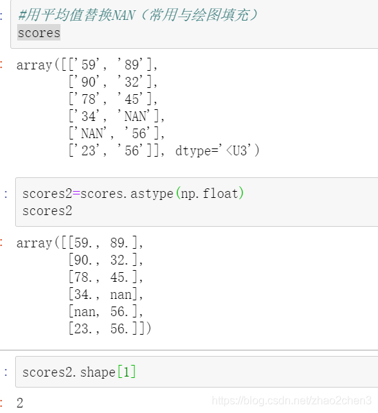 有些时候我们不想直接删掉,比如有一个成绩表,分别是数学和英语,但是因为某个人在某个科目上没有成绩,那么此时就会出现NAN的情况,这时候就不能直接删掉了,就可以使用某些值进行替代。