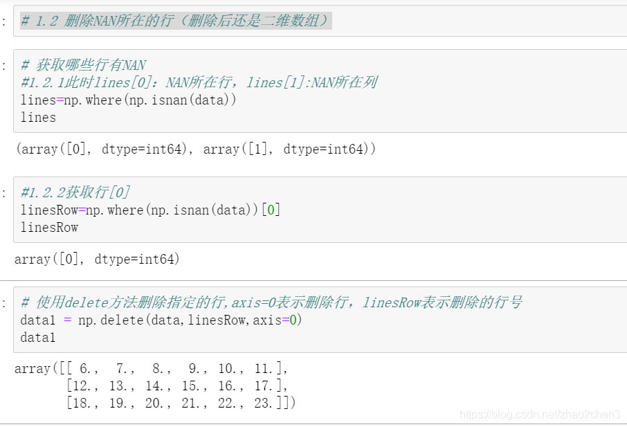 3.1.2 删除NAN所在的行(删除后还是二维数组)