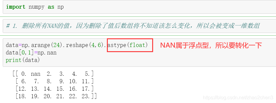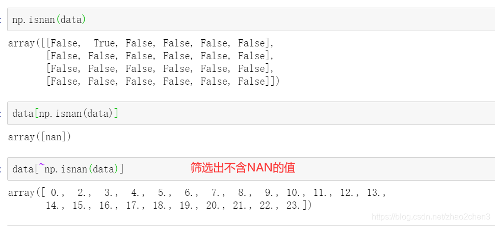 3.1.1 将数组中的NAN删掉,那么我们可以换一种思路,就是只提取不为NAN的值