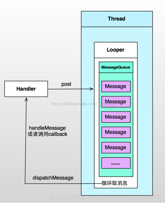 注:对应关系Thread(1):Looper(1):MessageQueen(1):Handler(n).